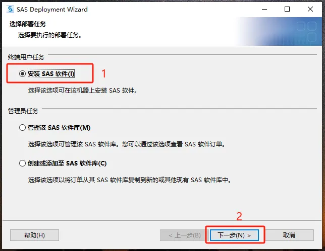 第五步:选择【安装SAS软件】,然后点【下一步】。