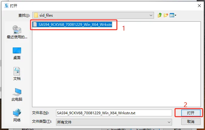 第十四步:点击【SAS94....Wrkstn】并选中,点击【打开】。