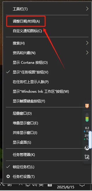 第十七步:右下载电脑时间日期位置,右击,选择【调整日期/时间】。