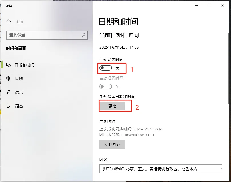 第十八步:将自动设置时间关闭,然后点【更改】。