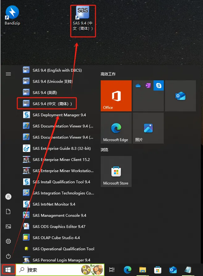 第四十七步:点【开始】,找到【sas中文】,将其拖到桌面。
