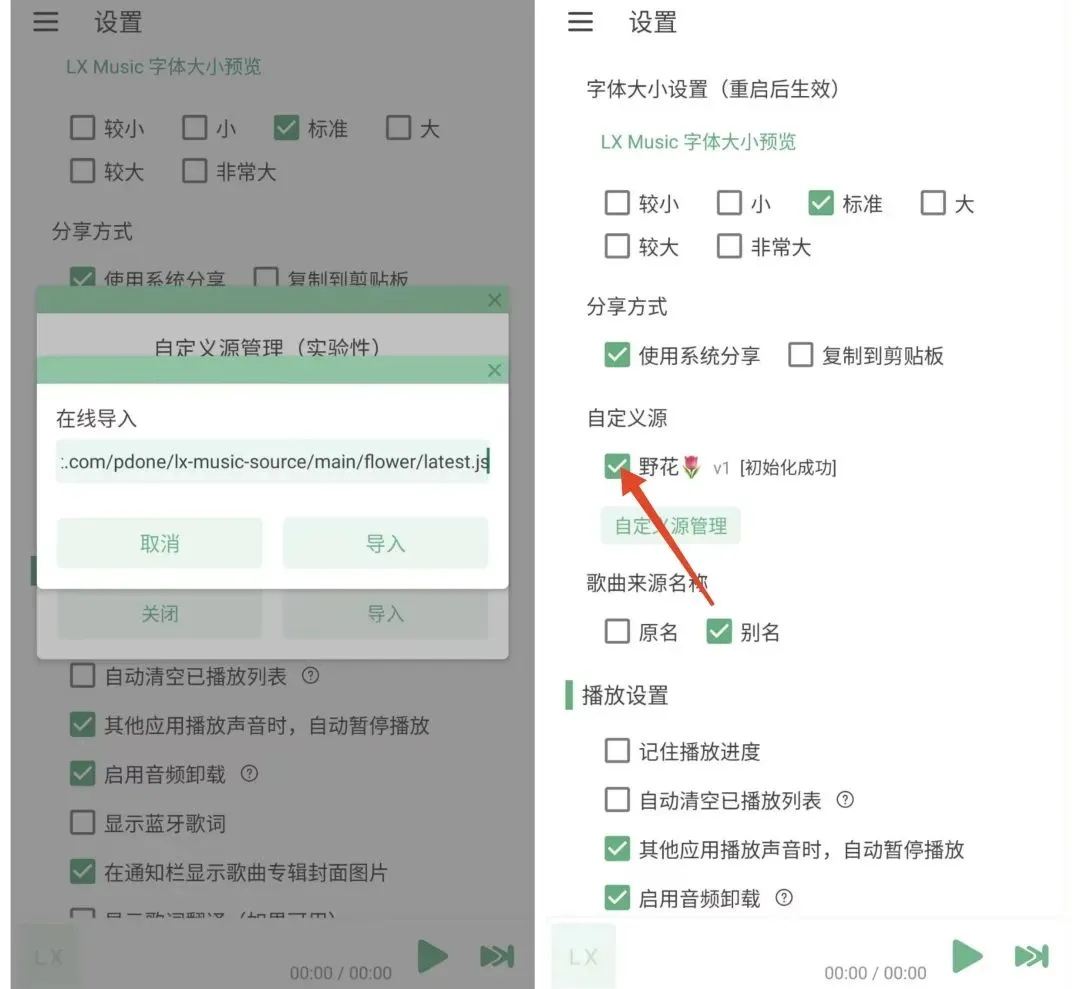 导入音源教程:在设置中找到自定义源管理→在线导入→复制粘贴音源(下面会提供音源)→导入成功后,再勾选该音源,显示初始化成功即可使用!