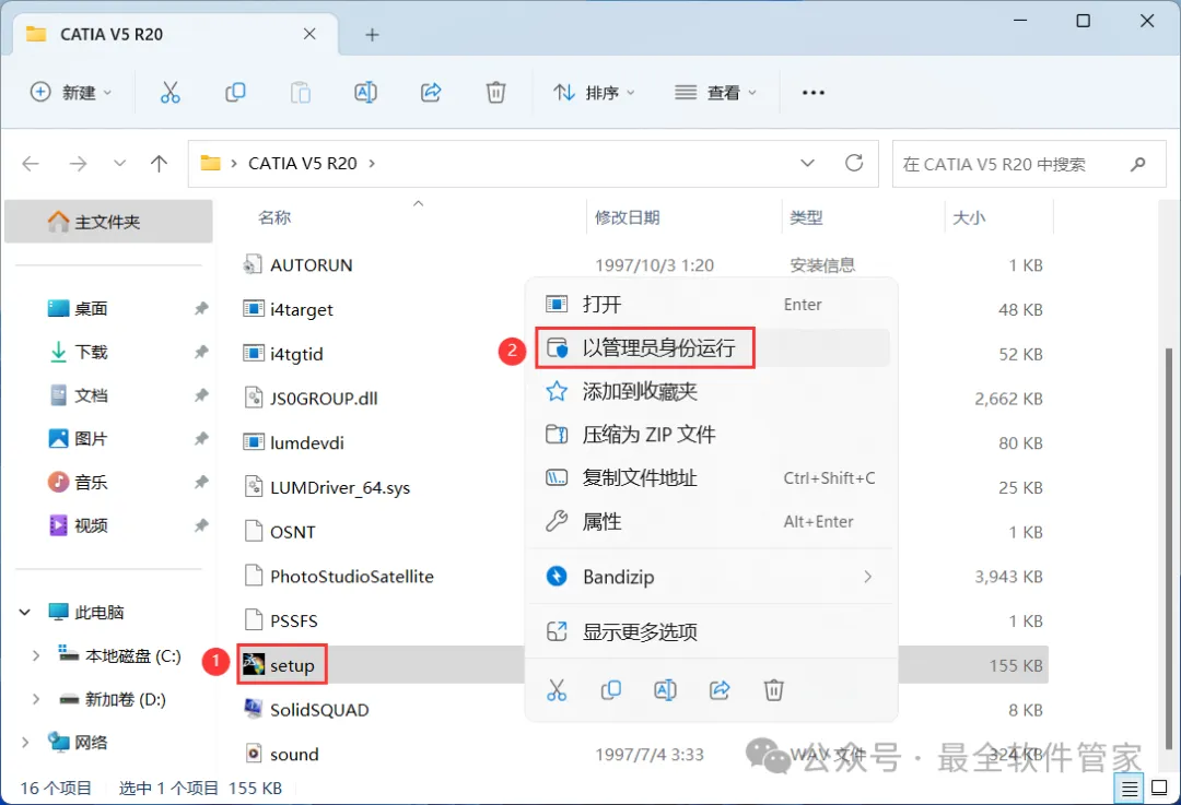 3、找到【setup】应用程序,右键选择【以管理员身份运行】它