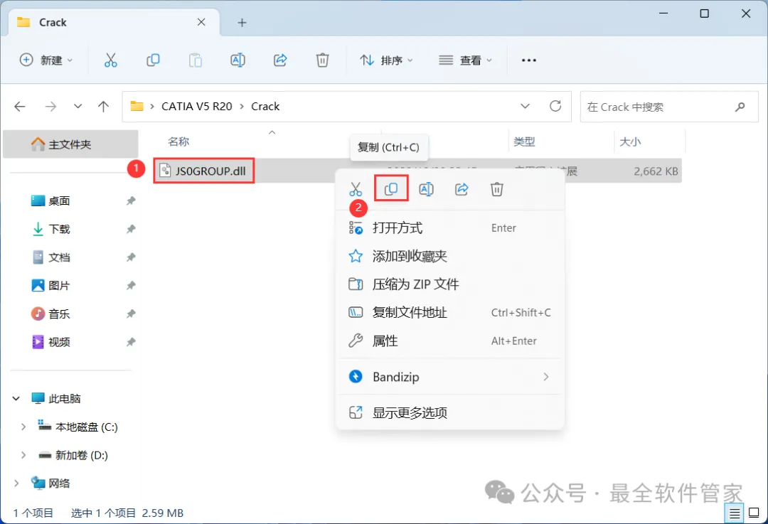 18、找到【JS0GROUP.dll】文件,再右键点击【复制按钮】