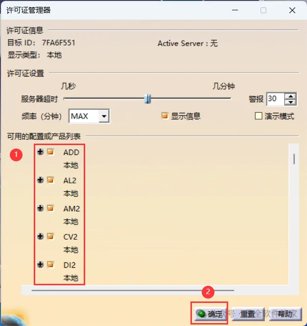24、勾选【可用的配置或产品列表】,取消勾选【DIC】、【ED2】、【EX2】和【I3D】,再点击【确定】
