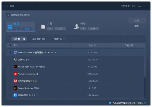 迁移软件:将软件及其相关数据文件从旧电脑直接转移到新电脑,让你在新电脑上快速恢复工作状态,避免繁琐的安装和配置过程,节省时间。但也不是完美的,有些软件可能在不同的操作系统或版本之间存在兼容性问题。