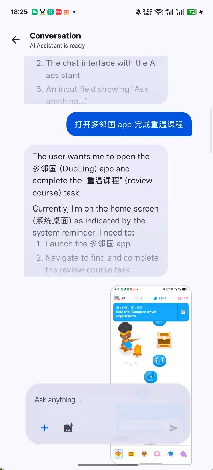 这开源免费的Phone Agent,能不能帮我过一下多邻国打卡?