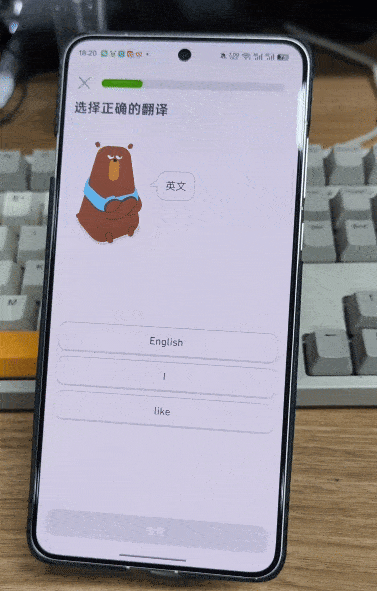 它很快打开了多邻国App,并且进入「重温课程」执行起来。