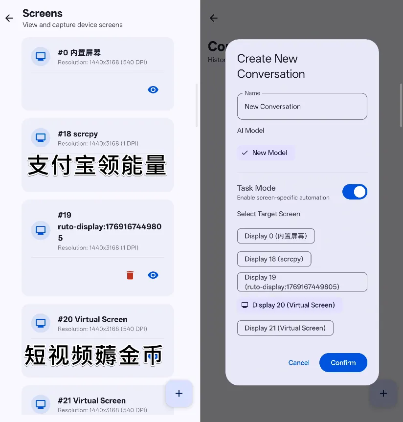 还可以创建多个虚拟屏幕和任务对话,多任务并发执行的同时,做到真后台、不打扰。