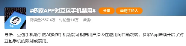 在豆包手机刚出来没多久,就对它的应用操作能力,做了风控限制。