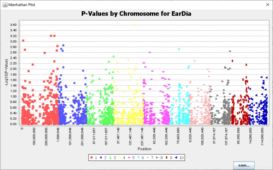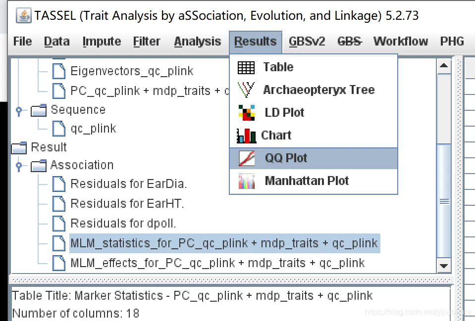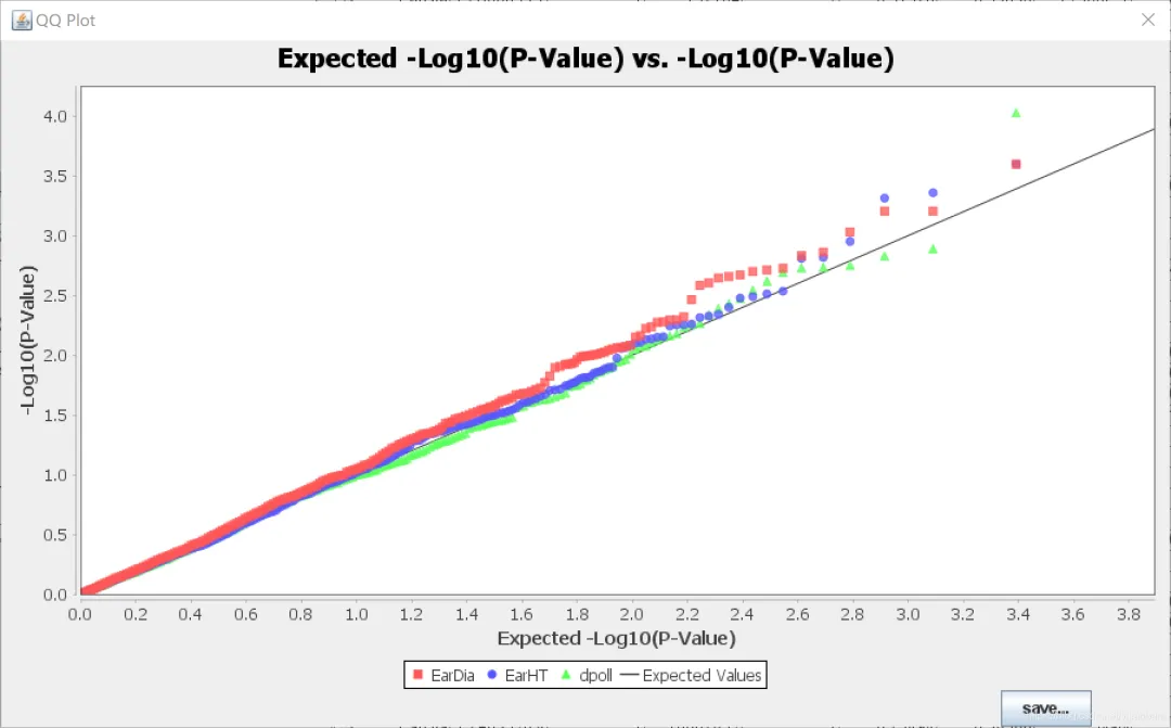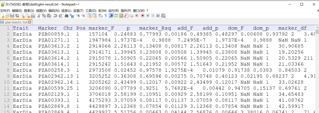 TASSEL有对结果进行可视化的模块,包括qq图和曼哈顿图,但是图不方便调整。这里用TASSEL的分析结果,使用R语言进行绘制qq图和曼哈顿图。
