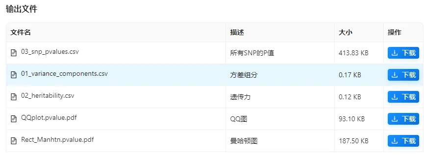 4,查看结果,包括GWAS的Pvalue结果(包括pve解释百分比、QQ图、曼哈顿图)