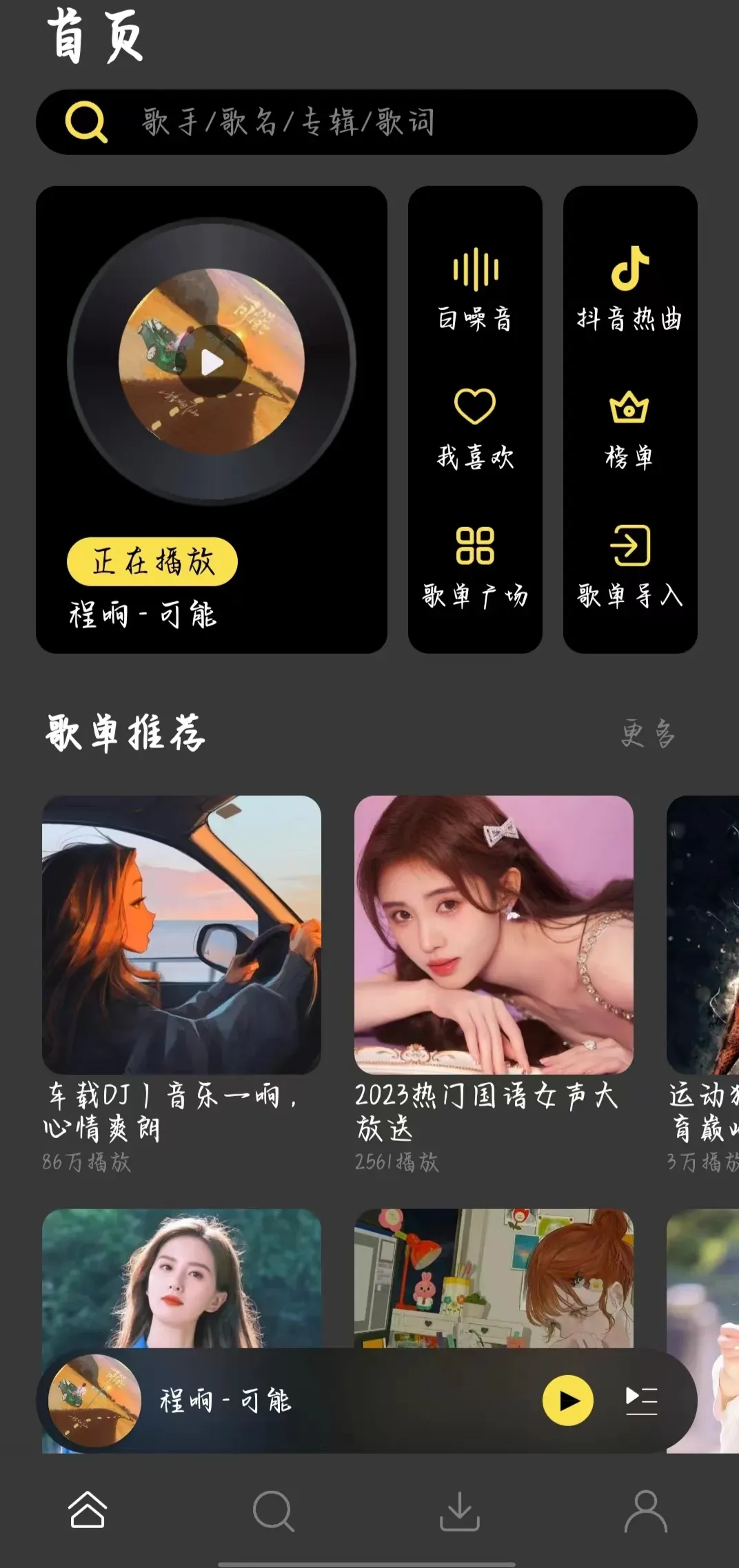 - 支持导入歌单、自定义音源