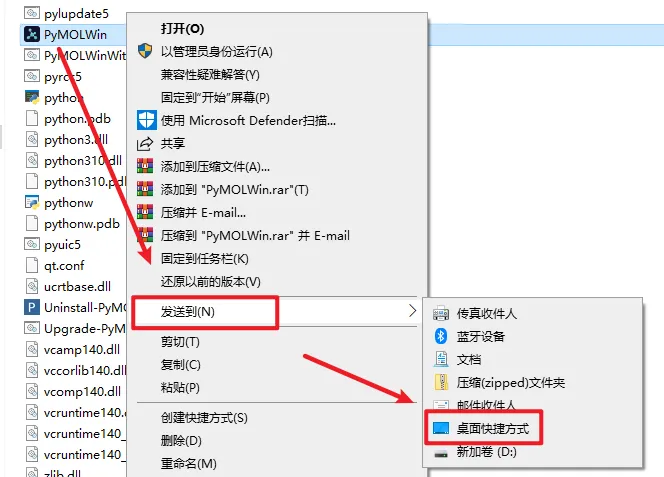 12.找到并选中“PyMOLWin”右键选择“发送到-桌面快捷方式”
