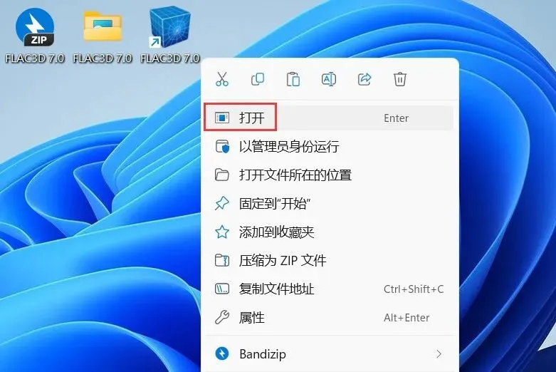 18、回到桌面,右键桌面上的【FLAC3D 7.0软件图标】,点击【打开】