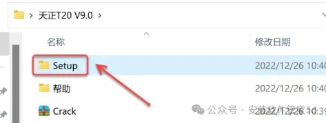 打开解压后的【天正T20 V9.0】文件夹,找到 Crack 文件夹。