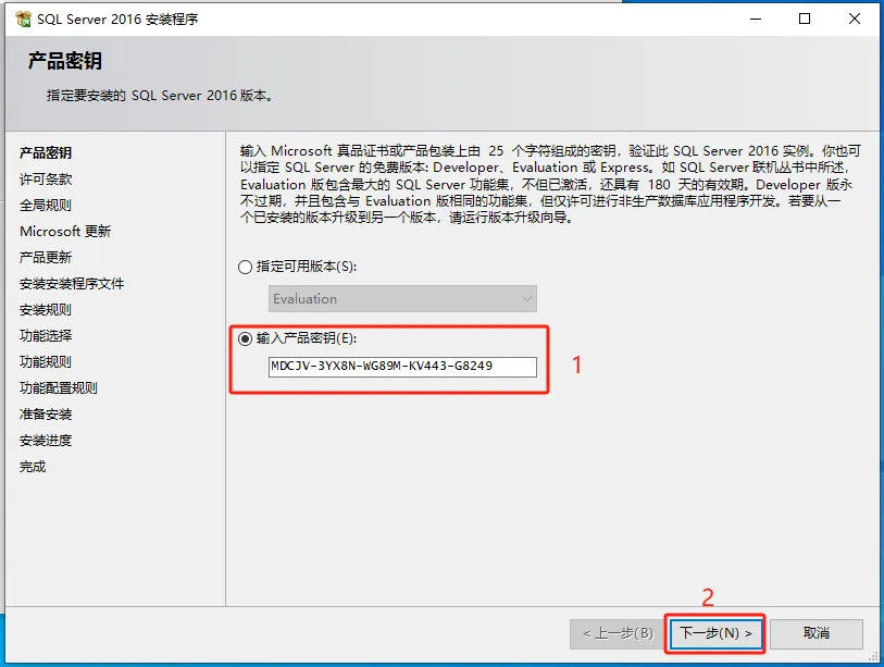 第二十步:选择【输入产品密钥】,点击【下一步】。