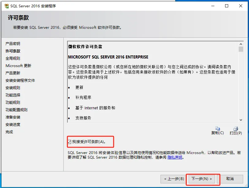第二十一步:勾选【我接受……】,然后点【下一步】。