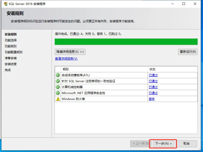 第二十五步:此处会对安装环境进行检测,如有不符,按照说明更改设置。然后选择【下一步】。