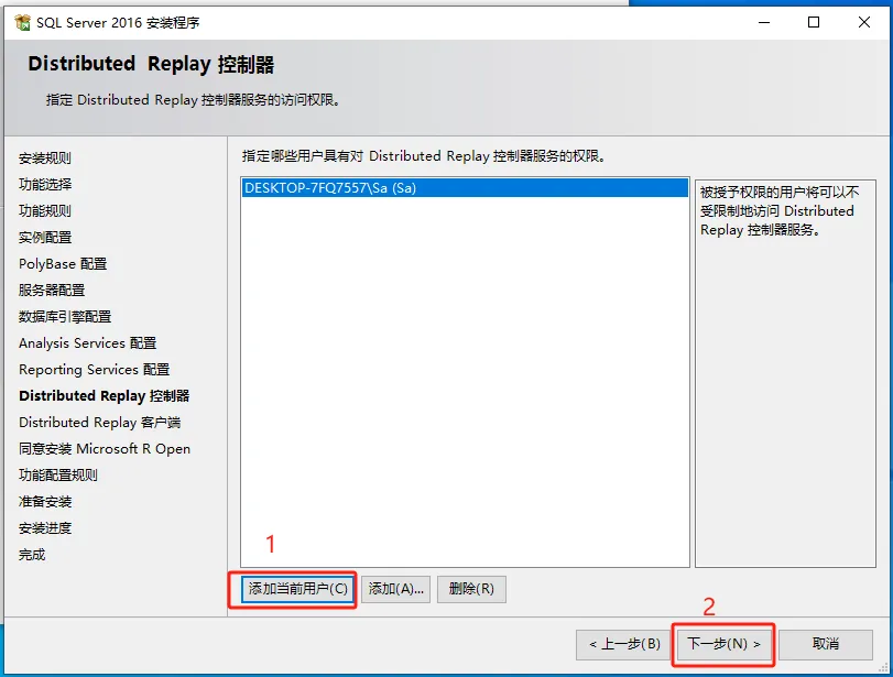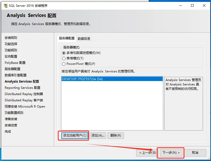 第三十三步:点【添加当前用户】,然后点【下一步】。