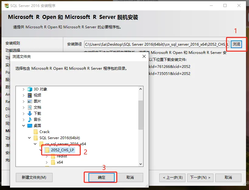 第三十六步:点【浏览】,选择解压后的文件夹中的【2052_CHS_LP】文件夹,然后点确定。(注:下载解压好的文件夹,路径中不可有中文,否则可能安装失败。)