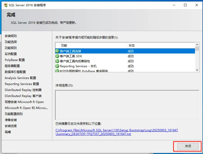 第四十步:安装完成,点【关闭】。(注:所选组件都提示成功)