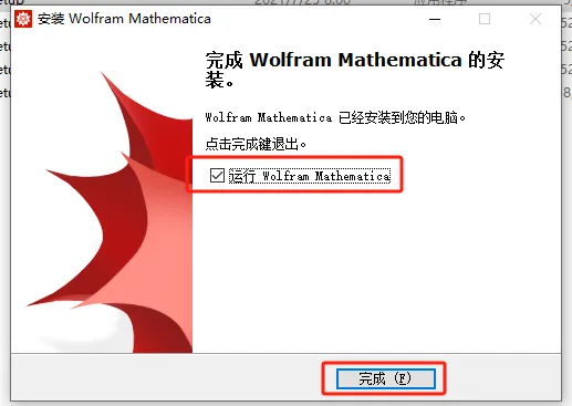 第十一步:勾选【运行 wolfram】,然后点完成。(如没有运行程序,可在桌面手动打开。)