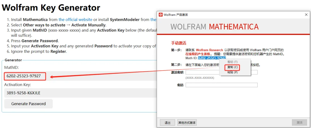 第十八步:将【14步】界面上的MathID复制并粘贴在激活界面的MathID位置。