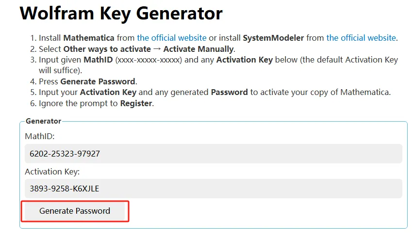 第二十步:将【Activation Key】处的密钥复制到安装界面【激活密钥】处,将【Password】复制到安装界面【密码】处。然后点激活。
