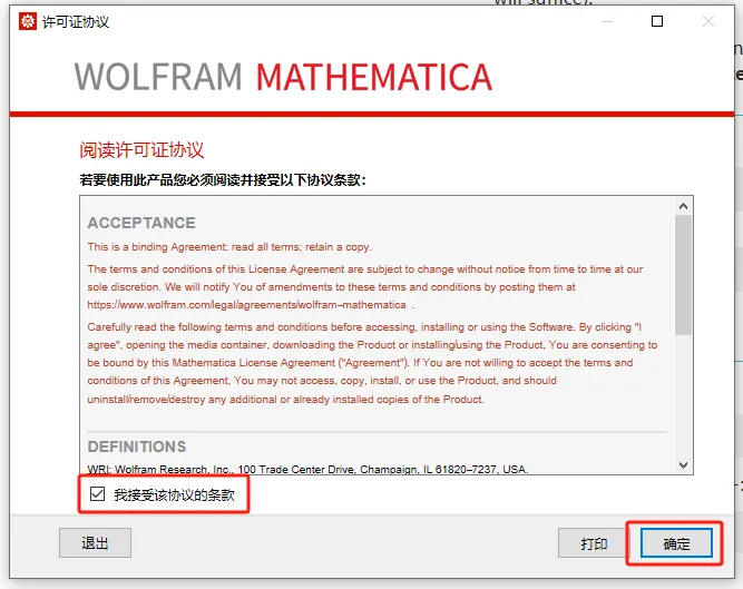 第二十一步:勾选【我接受该协议的条款】,然后点【确定】。