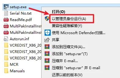 2.找到并选中“setup”,右键选择“以管理员身份运行”