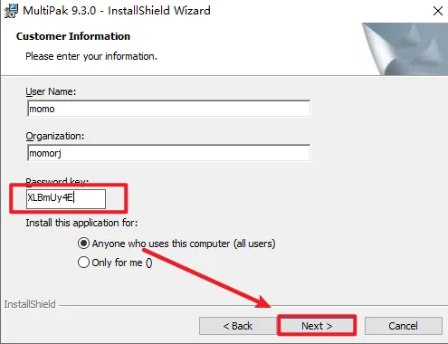 4.在Password key:XLBmUy4E,点击“Next”