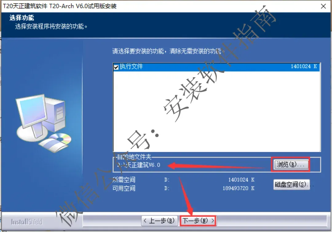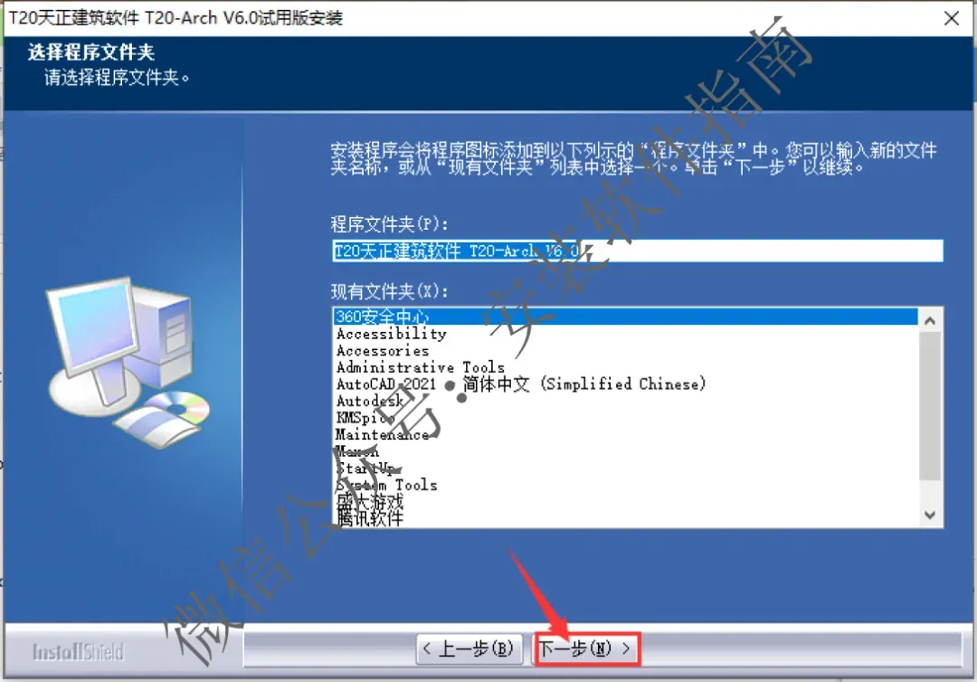 2、双击 T20天正建筑软件,开始安装