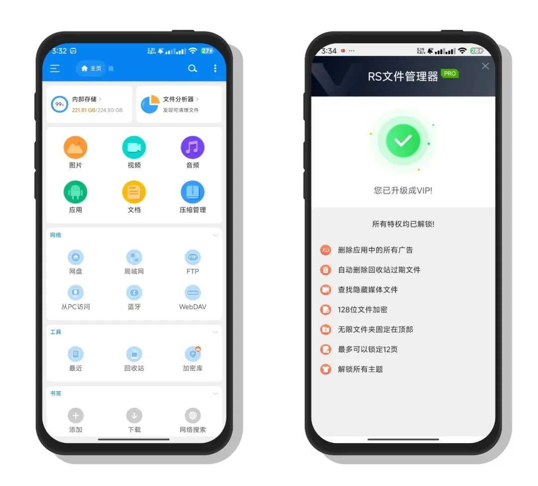 一款功能十分强大的安卓文件管理器,和大家熟悉的es文件浏览器功能类似,所有的专业功能会员功能全部免费使用,轻松对手机中的文件移动管理,让你更有效的管理手机文件。
