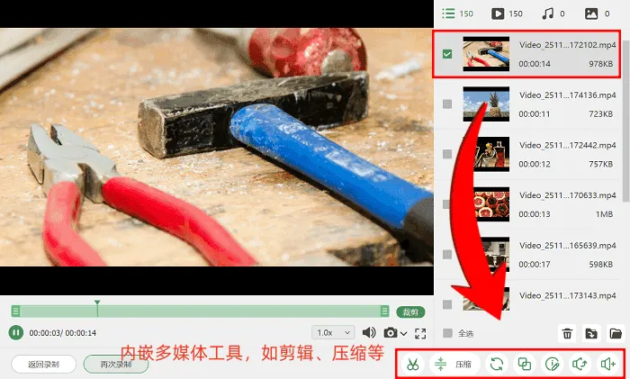3. 结束录制工作后,用户可利用软件自带的【高级编辑】工具,对视频进行分段、删减片段和添加特效等优化,完成后导出保存即可。