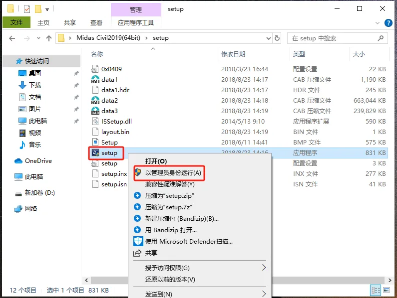 第四步:选中【setup】安装程序,吉击选择【以管理员身份运行】。