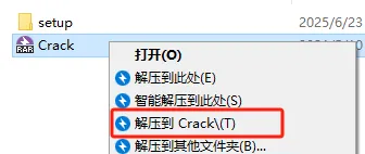 第二十七步:返回第二步解压的文件夹,找到【Crack】压缩文件,右击【解压到Crack】,并打开解压的文件夹。