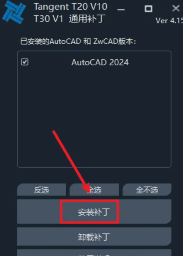 10.自动识别电脑上安装的CAD版本(中望CAD也支持),点击“安装补丁”