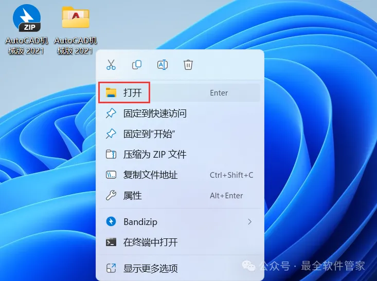 14、回到桌面,右键桌面上的【AutoCAD Mechanical 2021软件图标】,点击【打开】