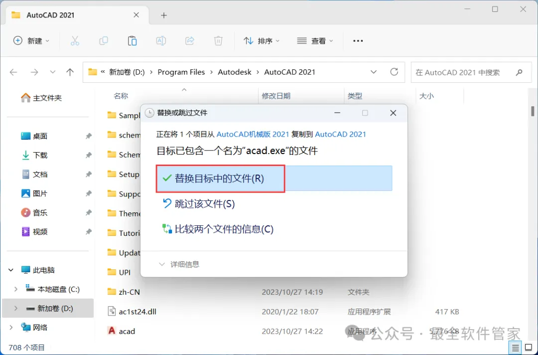 13、点击【替换目标中的文件】