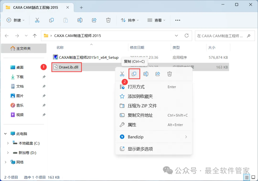 [软件名称]:CAXA CAM制造工程师 2015[不限速下载]:免费获取百度网盘不限速下载工具。公众号内回复:不限速[注意事项]:安装前请关闭网络、杀毒软件和防火墙,否则易安装失败。公众号内回复:1[解压软件]:小编用的解压软件是Bandizip,获取Bandizip软件安装包。公众号内回复:21、下载CAXA CAM制造工程师 2015软件安装包到电脑上,右键选择【解压到CAXA CAM制造工程师 2015\】3、找到【CAXA制造工程师2015…】应用程序,右键选择【以管理员身份运行】它6、软件默认安装在C盘,可自定义更改软件安装位置,这里小编选择安装在D盘;点击【安装】 8、不勾选运行CAXA CAM制造工程师 2015,再点击【完成】9、回到CAXA CAM数控车 2015文件夹,找到【DrawLib.dll】文件,再右键点击【复制按钮】 10、回到桌面,右键桌面上的【CAXA CAM制造工程师 2015软件图标】,点击【打开文件所在的位置】13、回到桌面,右键桌面上的【CAXA CAM制造工程师 2015软件图标】,点击【打开】 16、以上就是CAXA CAM制造工程师 2015软件安装的全过程,要是对你有帮助的话,请为小编点个赞! 免责声明:软件资源均来源于网络,仅供用户交流学习与研究使用,版权归属原版权方所有,版权争议与本公众号无关,用户本人下载后不能用作商业或非法用途,否则后果均由用户承担责任;如果您访问和下载此文件,表示您同意只将此软件用于参考、学习而非其他用途,否则一切后果请您自行承担,请于下载后24小时内删除,不允许用于商业用途,否则法律问题自行承担。如果您喜欢该软件,请支持正版软件,购买注册,得到更好的正版服务。