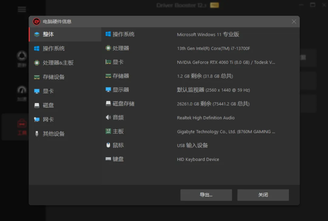“工具”区更像个百宝箱:驱动备份还原、修复无声音、修复网络故障、修复设备异常、修复分辨率问题、修复驱动兼容性,基本把日常驱动疑难杂症都包圆了,还能随时查看详细硬件参数。