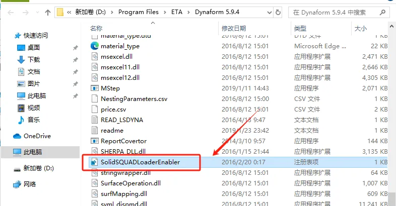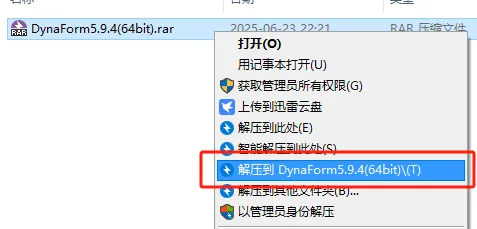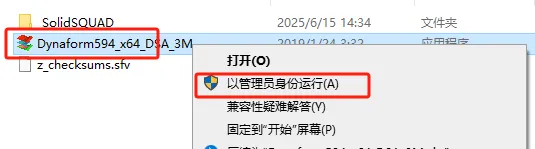 第三步:打开解压后的文件夹,找到【Dynaform594_x64_DSA_3M】选中,右击【以管理员身份运行】