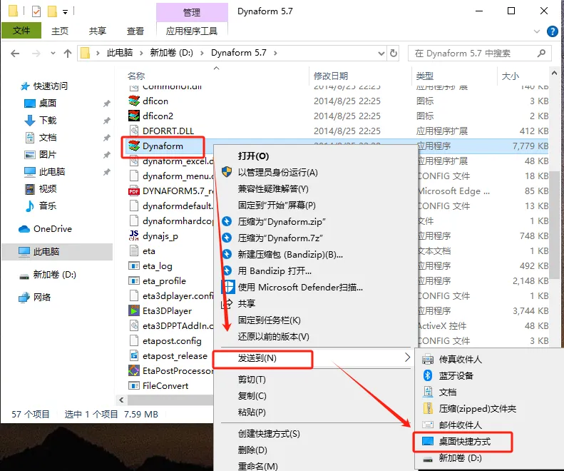 第三步:找到【DynaForm】右击,依次点击【发送到】--【桌面快捷方式】。