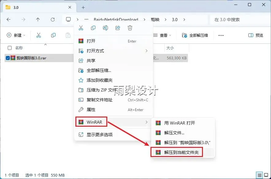 1.右键【下载的安装包】选择【解压当前文件夹】