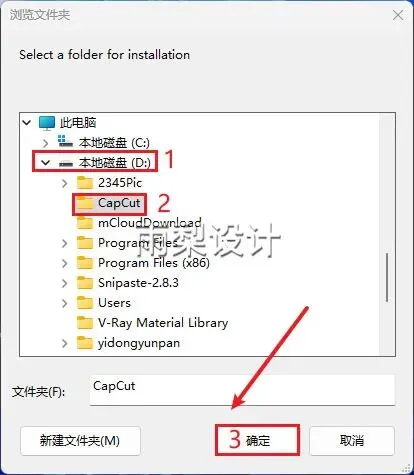 5.先选择D盘,在D盘下新建文件夹(安装前建好,名字尽量不要中文),点击【确定】