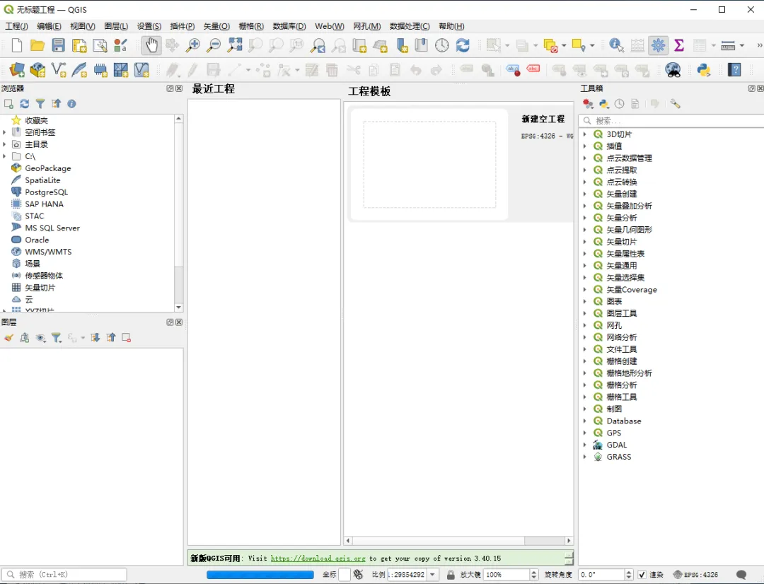 QGIS(原称 Quantum GIS)是一款桌面地理信息系统(GIS)软件,它基于 Qt 框架和 C++ 语言开发,提供数据的显示、编辑、分析、可视化及地图制作功能。QGIS 整合了 GRASS、SAGA GIS 等工具,并支持通过插件扩展功能,广泛应用于国土规划、环境监测、农业林业、交通运输、科研教育等领域。