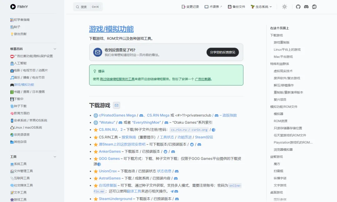 FMHY,专注收录国内外开源软件,提供了软件介绍、支持的平台以及下载渠道。