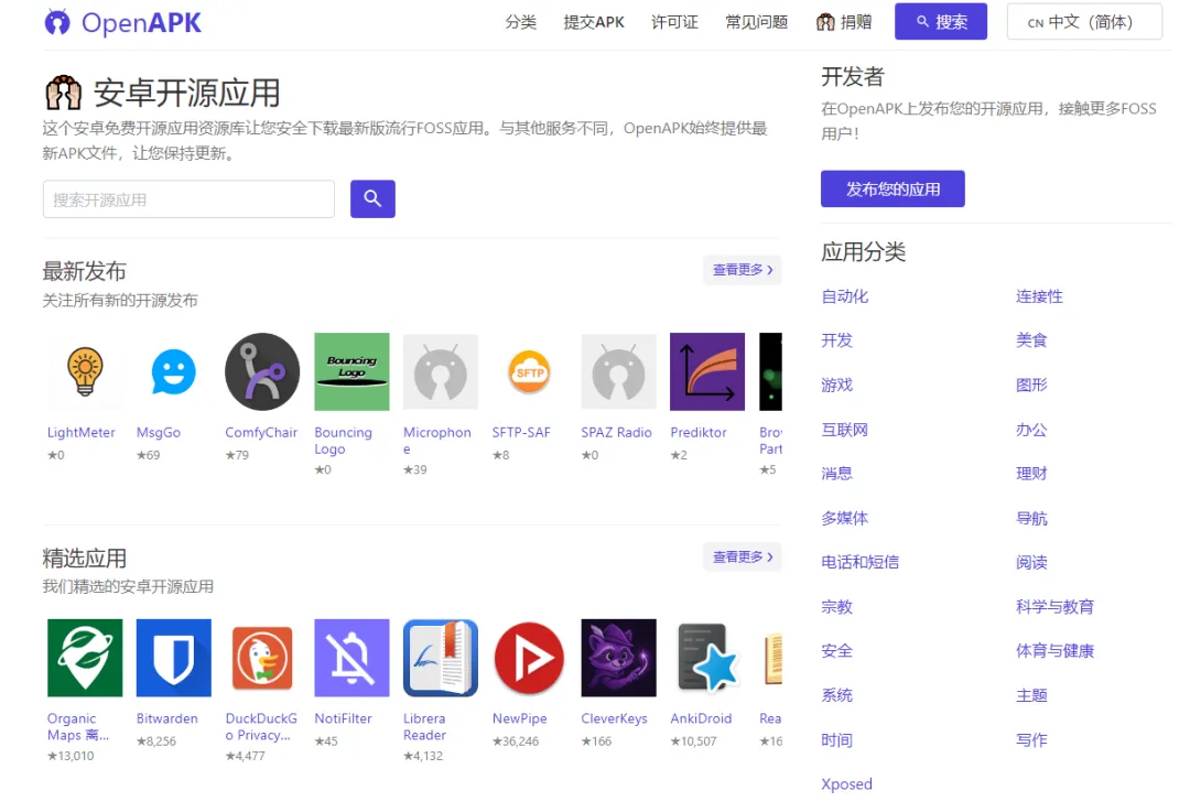 OpenAPK,是一个纯免费、无广的安卓的各种类型的APK下载网站。
