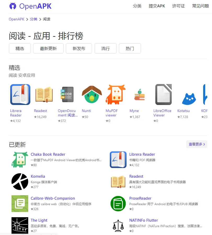 涵盖小说、游戏、办公等等应用,每周更新列表,提供下载。